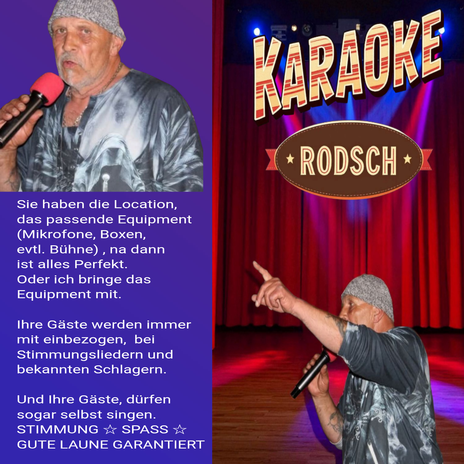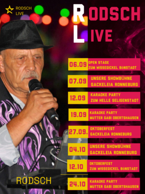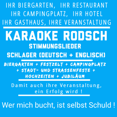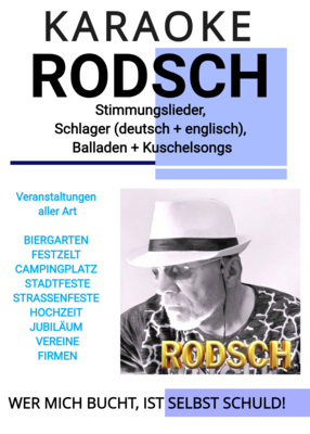 KARAOKE RODSCH bietet eine bunte Auswahl an Stimmungsliedern, Schlagern und Balladen, die für jede Veranstaltung geeignet sind.