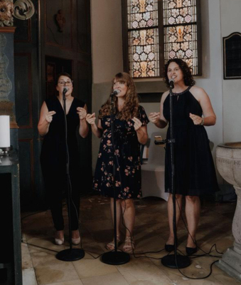 Dream's Divine bietet eine außergewöhnliche musikalische Begleitung für den schönsten Tag im Leben. Der mehrstimmige Gesang des Trios schafft ein unvergessliches Highlight für Hochzeiten. Mit ihrer umfangreichen Erfahrung haben die Hochzeitssängerinnen aus Wuppertal bereits über 100 Brautpaare bei der Planung ihrer Trauung unterstützt und stehen Ihnen mit ihrem musikalischen Fachwissen zur Seite.