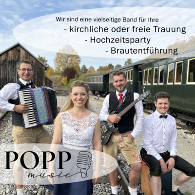 Die Band „Popp-Music“ besteht aus den vier Musikern Simon, Tatjana, Julian und Philip. Mit viel Freude und spürbarer Leidenschaft begeistert die Gruppe ihr Publikum bei Hochzeitsfeiern, Firmenevents und Partys aller Art.