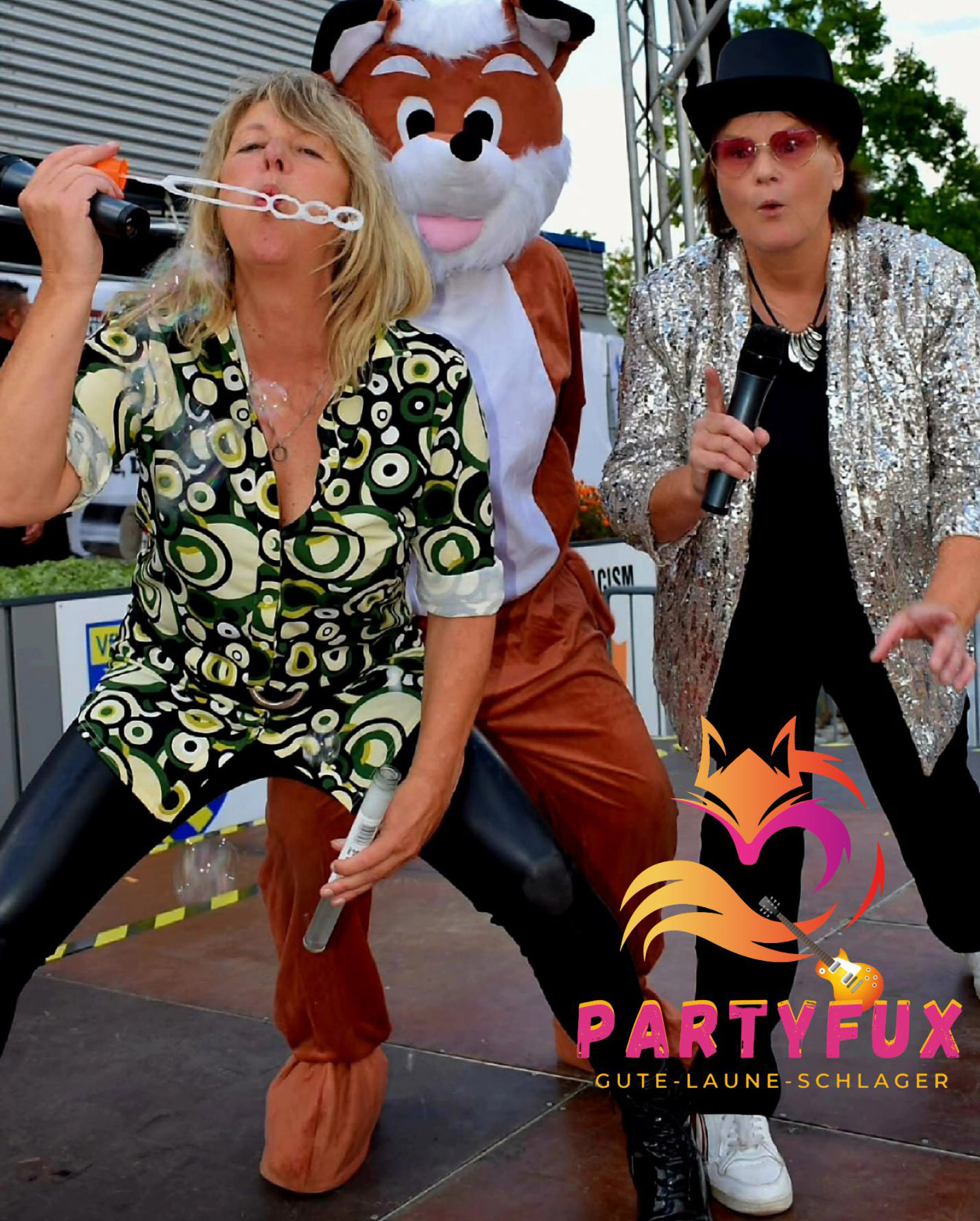 PartyFux steht für echten, puren Schlager – kraftvoll, mitreißend und so facettenreich wie das Publikum selbst. Das Duo begeistert mit energiegeladenen Liveshows, überraschenden Momenten und exklusiven Eigenkompositionen, die jedes Event in ein unvergessliches Erlebnis verwandeln. Mit einem unverwechselbaren Sound, der Schlager mit markanten Rockelementen verbindet, bringen die beiden erfahrenen Musikerinnen frischen Wind auf die Bühne und liefern eine kompromisslose Partygarantie.